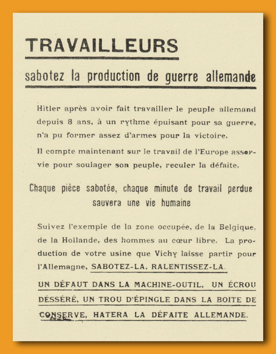 La Résistance est maintenant organisée : les imprimeries clandestines tournent, les sabotages se précisent, les renseignements «remontent» à Londres. Les mouvements sont divers avec le Front National pour l’Indépendance de la France (communistes, gaullistes inorganisés, chrétiens, sans engagements), les FTP, à base communiste, tournés vers la guérilla, les réseaux de renseignement reliés aux FFC à dominante gaulliste, ou le mouvement Libération d’inspiration socialiste et plutôt orienté vers la bataille des idées.