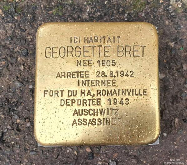 Le 24 novembre deux autres pavés ont été scellés en hommage à Georgette (BRET Georgette )et Robert Bret (BRET Robert) 82 rue Dubourdieu à Bordeaux.